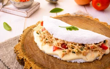 Incorporar a carne: Adicione a carne seca desfiada, o tomate e o pimentão. Misture bem e refogue por 5 minutos, permitindo que os sabores se integrem.